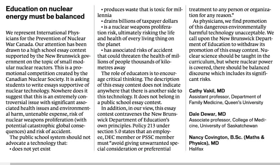 Commentary, Media Lia Holla 8/23/23 Commentary, Media Lia Holla 8/23/23 Response to New Brunswick Nuclear Energy Essay Contest Read More